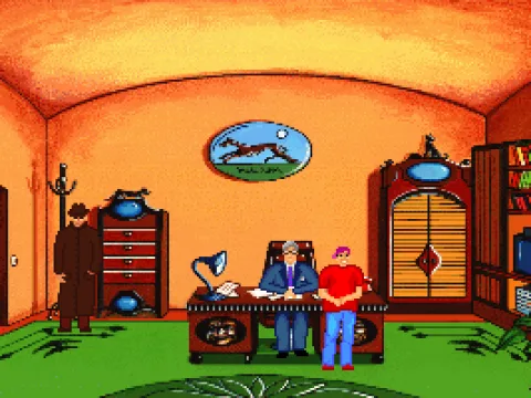 Teen Agent is a point and click adventure game with a comedic tone. The player character is Mark Hopper, a teenager recruited by the RGB intelligence agency after being identified by a fortune teller.