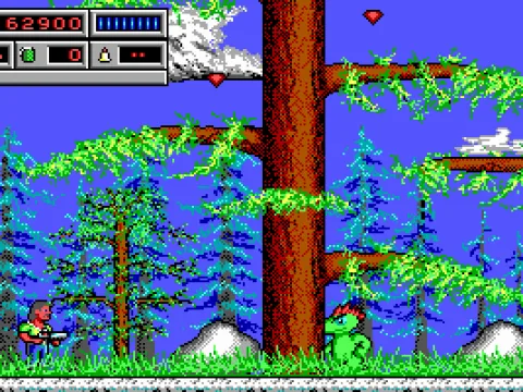 The technical foundation of the game is the Commander Keen engine, resulting in shared interface elements like the status display, menu systems, and startup configuration. Gameplay involves navigating through twelve levels per episode, defeating various mutants to reach an exit. Progression is gated by the need to first rescue a hostage in each stage, often requiring the deactivation of laser barriers using found keycards or crystal shards.