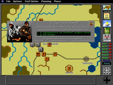 V for Victory: Velikiye Luki is a World War II strategy game set on the Eastern Front. Players can assume command of either the German or Russian forces, with each side having distinct and opposing strategic objectives.