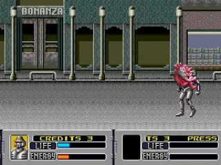 Alien Storm is a mission based action game where players control one of three characters known as the Alien Busters. The team, consisting of Karla, Gordon, and Scooter, is tasked with stopping an extraterrestrial invasion that progresses from city streets to the alien mothership.