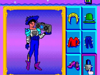 The sprite creation is handled by two separate mini-games found in another category. These allow for designing characters by assembling different clothing and body parts, which can then be used in the painting application.