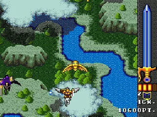 Gameplay involves controlling Apollo, who attacks with a sword capable of launching fireballs. A charged attack, executed by holding and releasing the fire button, releases a more powerful projectile. Throughout the levels, collectible items enhance the character's capabilities, primarily increasing speed and offensive power.