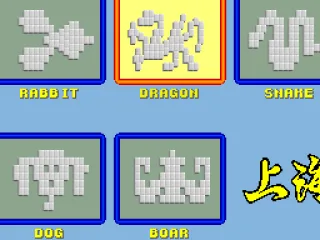 Shanghai II: Dragon's Eye is a tile matching game where players clear a board by removing identical pairs of mahjong tiles. The available tile sets and patterns, some themed after zodiac animals, offer variety. A layout editor is included for custom patterns.